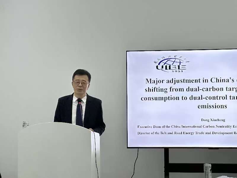 我校中国国际碳中和经济研究院执行院长董秀成作题为《中国“能耗双控”转向“碳排放双控”的政策分析解读》的主题报告,从宏观调控框架变化、能源结构优化要求到对企业和区域发展的影响等方面,系统分析了双控体系升级背景与实施逻辑。该议题与我校研究院在能源经济、低碳治理和国际经贸规则研究中的优势高度契合,也为与会代表更全面理解中国政策创新路径提供了深度分析。